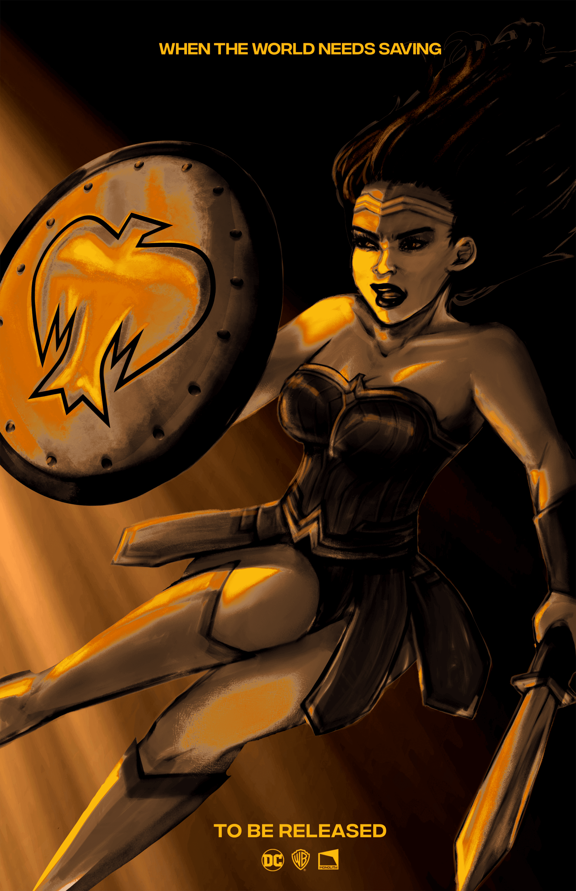 Warner Bros. announced a game for Wonder Woman by releasing a teaser. This inspired me to make a poster to promote its announcement.